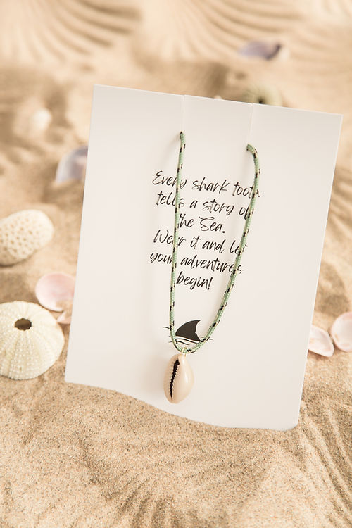 Breng de zomer naar je dagelijkse stijl met onze vrolijke schelp ketting! Deze verstelbare ketting is perfect voor zowel kinderen als volwassenen en is versierd met een prachtige enkele schelp in groen met blauw beige tinten.